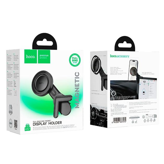 Hoco H57 Magnetic Ring — это стильный и надежный магнитный держатель, предназначенный для установки на приборную панель автомобиля. Он обеспечивает прочную фиксацию смартфона даже при интенсивном движении, не мешает обзору и подходит для большинства современных устройств с диагональю от 4,5 до 7 дюймов.