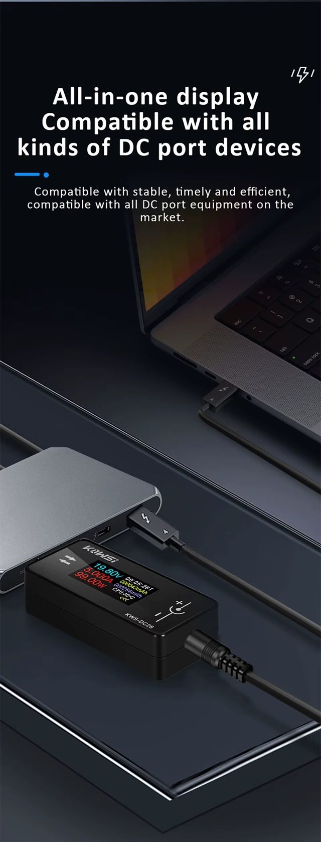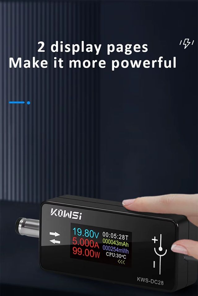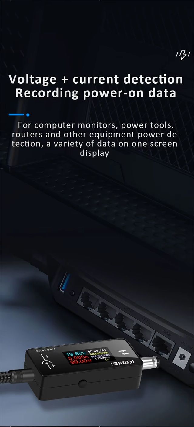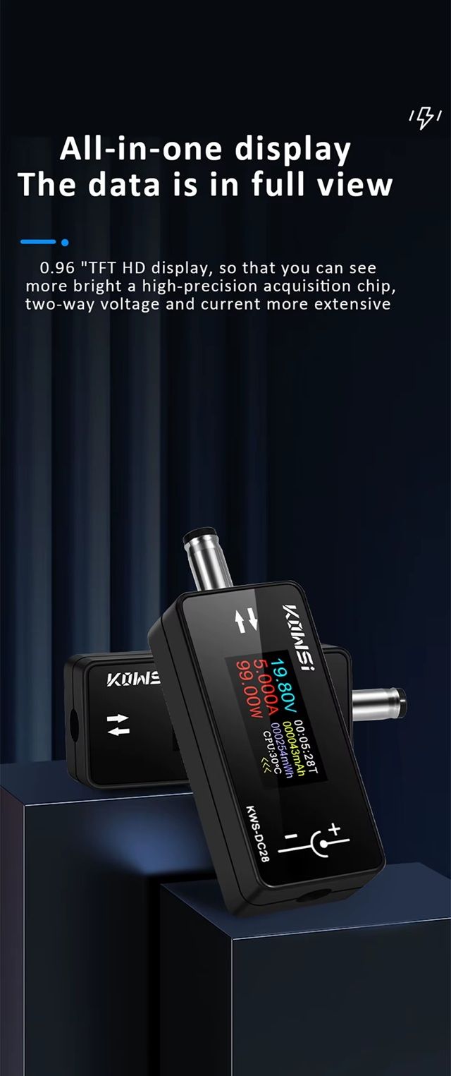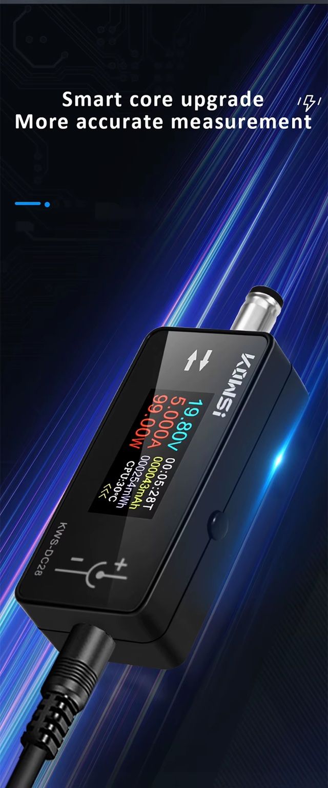Компактный и высокоточный тестер KWS-DC28 предназначен для измерения напряжения, тока, мощности и других параметров в реальном времени. Оснащён цветным TFT-дисплеем, он предоставляет всю информацию на одном экране, позволяя контролировать работу источников питания, компьютерных мониторов, сетевого оборудования, электроинструментов и других устройств с разъёмами 5.5x2.5 и 5.5x2.1 мм.