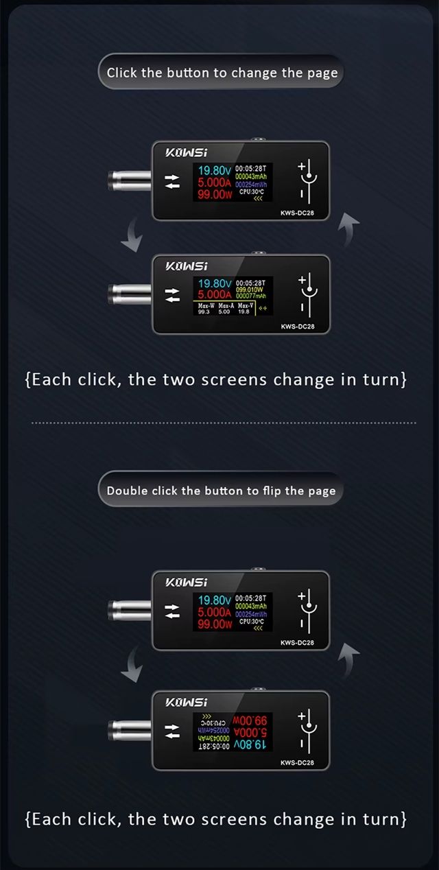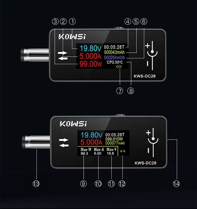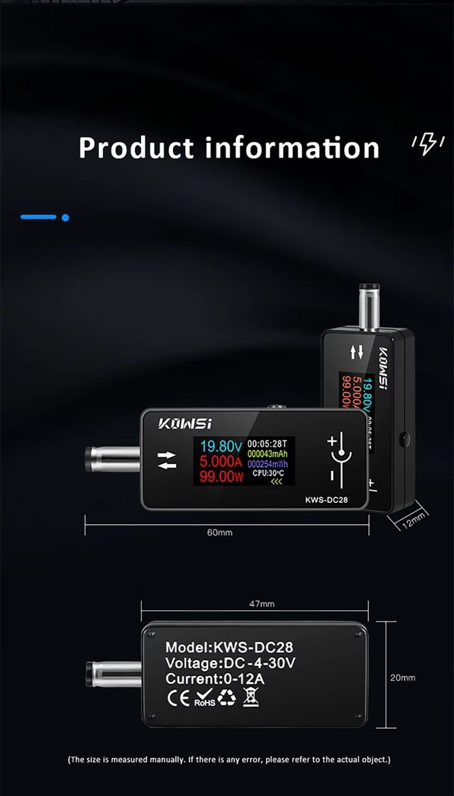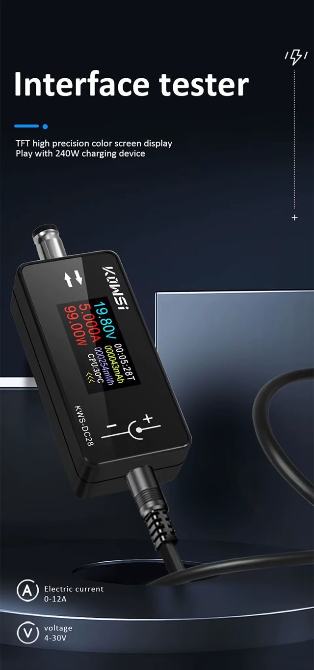 KWS-DC28 Multifunctional Tester DC 5.5x2.5, TFT Display, Black