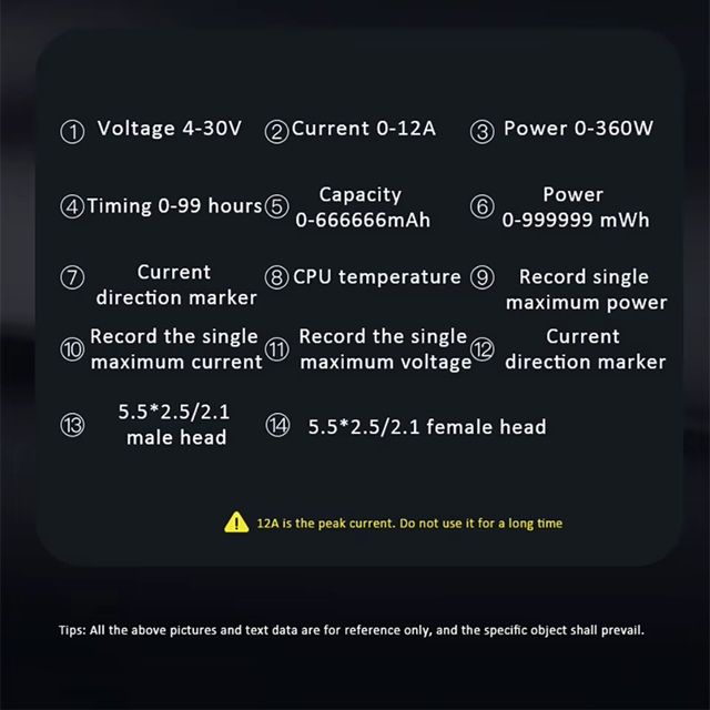 Ток: 0–12 А (максимальное значение не предназначено для длительного использования)