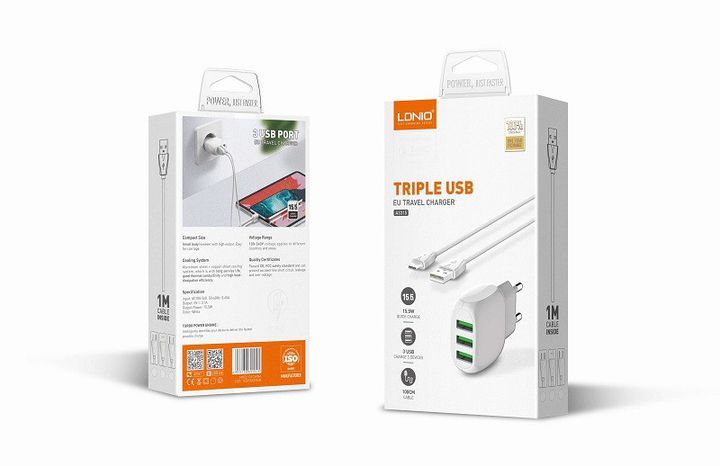 Сетевой адаптер LDNIO A3315 + Micro USB кабель |3USB, 3.1A| белый