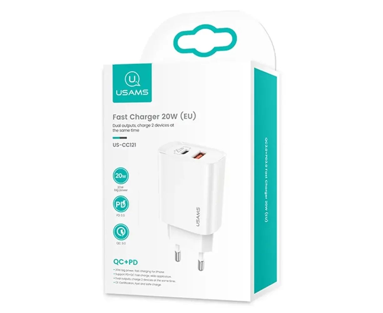 Быстрое зарядное устройство USAMS T35 US-CC121 |1USB/1Type-C, 20W, PD3.0/QC| белый