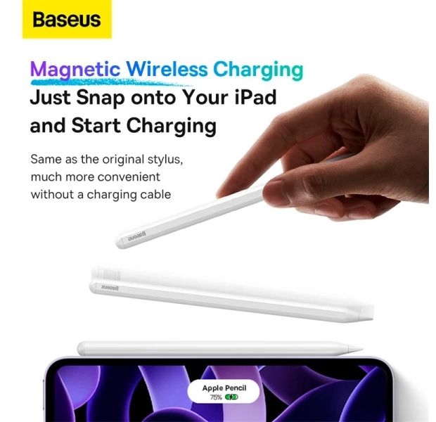 Baseus Smooth Writing Wireless Charging Stylus (Active+Wireless Version) (SXBC020102) white