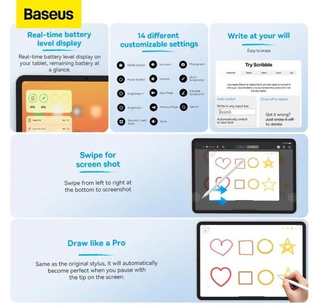- Отлично работает с большинством моделей iPad, включая iPad Pro, iPad Mini и iPad Air.