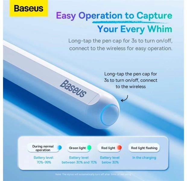 - Этот стилус работает до 10 часов при полной зарядке, а в режиме ожидания его аккумулятор может продержаться до 12 месяцев. Устройство автоматически выключается через 5 минут бездействия, экономя заряд.