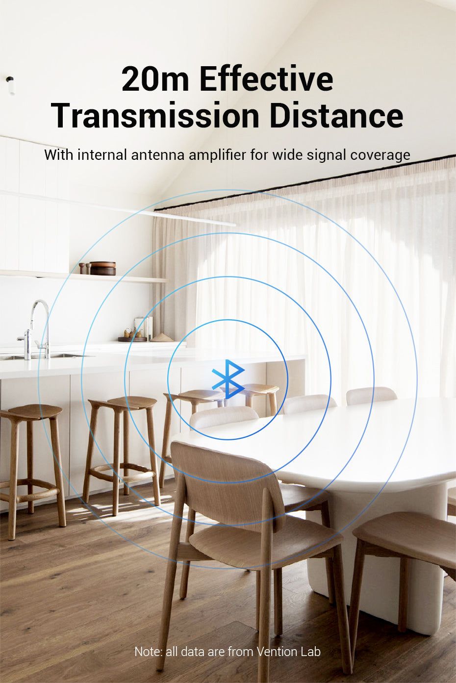 - Встроенный антенный усилитель обеспечивает уверенный приём сигнала на расстоянии до 20 метров.