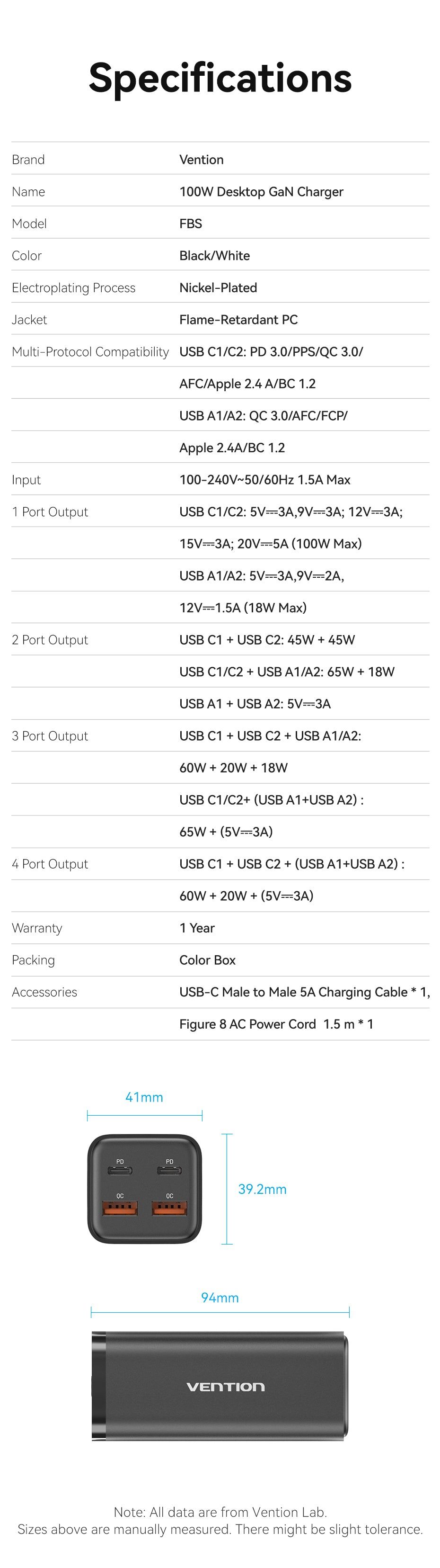 Мощное и компактное зарядное устройство от Vention, оснащённое четырьмя выходами (2 × Type-C и 2 × USB-A), обеспечивает быструю и безопасную зарядку до 4 устройств одновременно. Поддержка современных протоколов быстрой зарядки и технология GaN делают это устройство идеальным решением для дома, офиса и путешествий.