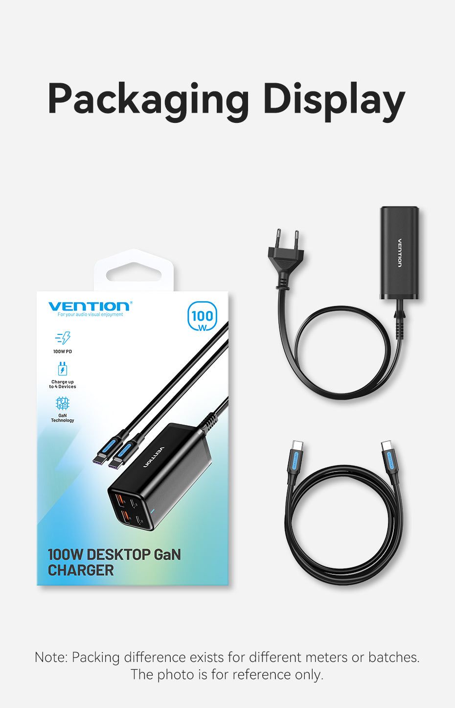 Устройство зарядки Vention 4-портовое USB (C + C + A + A) GaN зарядка (100W/100W/18W/18W) EU вилка черный