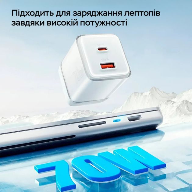 Устройство зарядки ESSAGER EZCT70 Gan 1T-C 1USB 70W белый