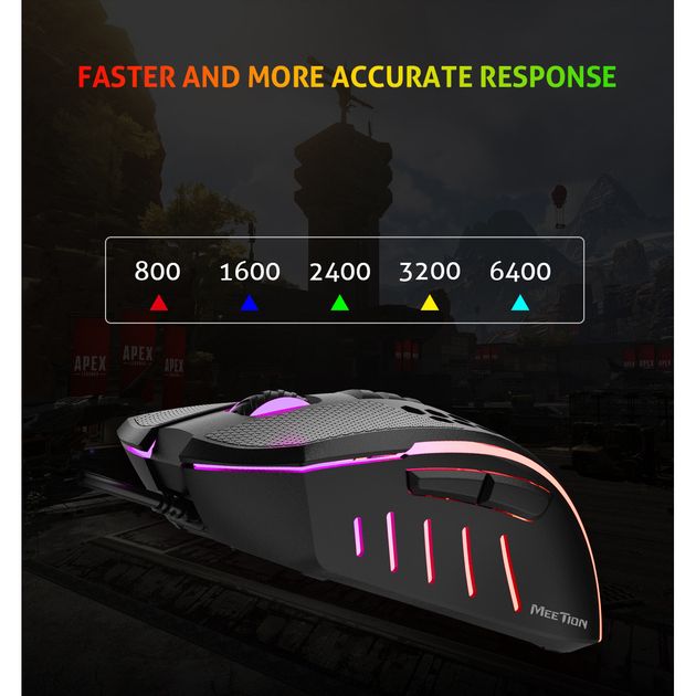 MEETION RGB Gaming Mouse GM015 |800-6400dpi| black