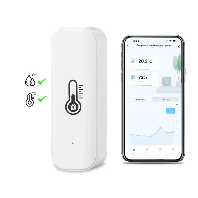 Это современное устройство для мониторинга микроклимата в помещении. Этот датчик обеспечивает точные измерения температуры и влажности в реальном времени, а также интеграцию с популярными системами умного дома.
