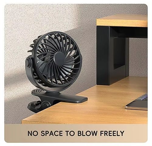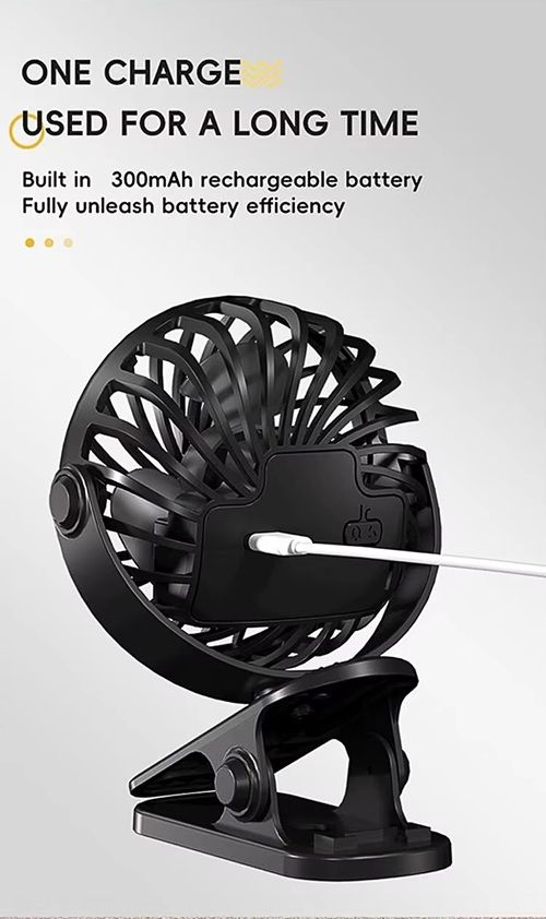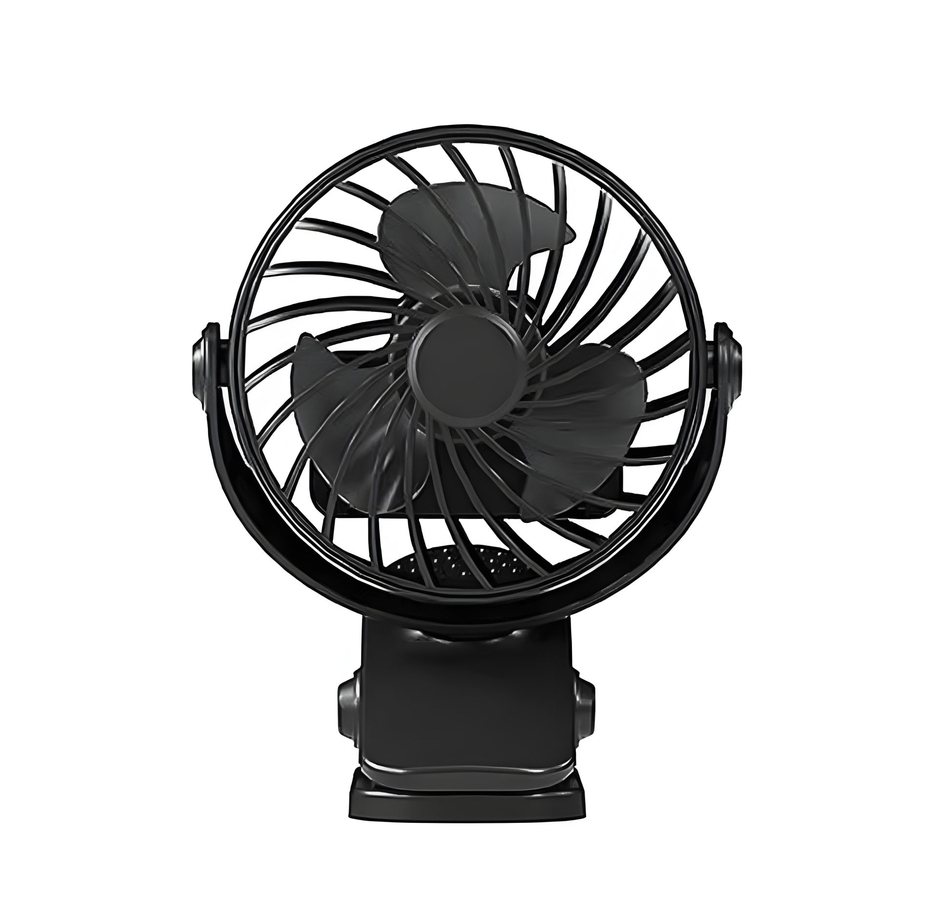 Портативный аккумуляторный USB Вентилятор на прищепке, 12x11cm, 720град вращения, 2.5W, 5V, 500mAh, Type-C, black