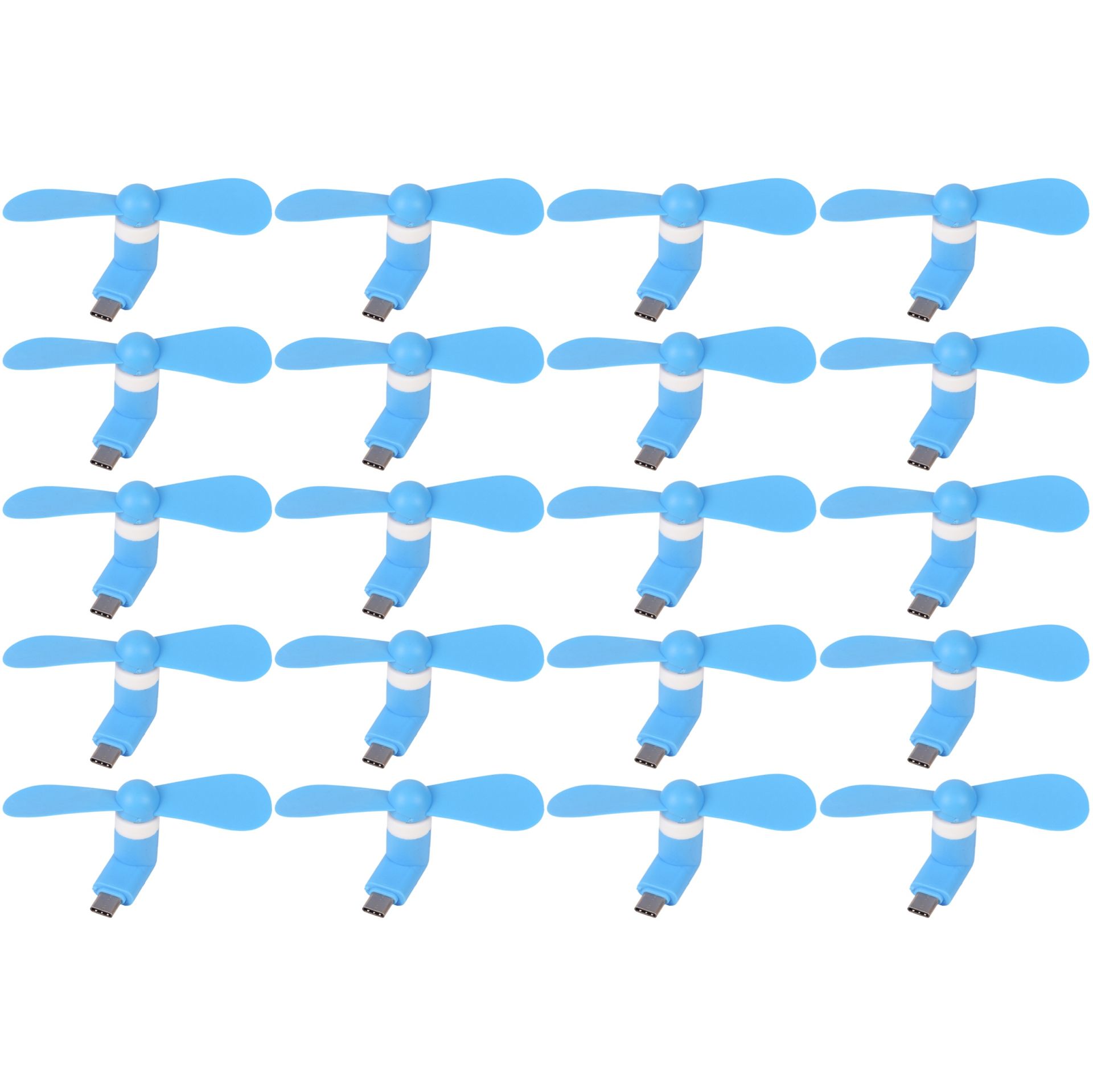 Мобильный вентилятор Type-C синий, от телефона, повербанка, ноутбука, комплект 20шт