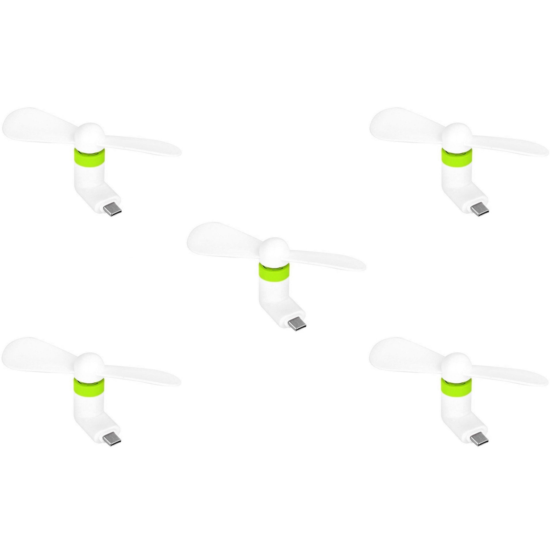 Мобильный вентилятор Type-C бело-зеленый, от телефона, повербанка, ноутбука, комплект 5шт