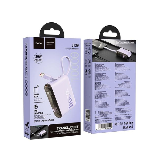 HOCO J139 Hero fully compatible 22.5W+PD20W power bank(Type-C) (10000mAh) Purple Повербанк