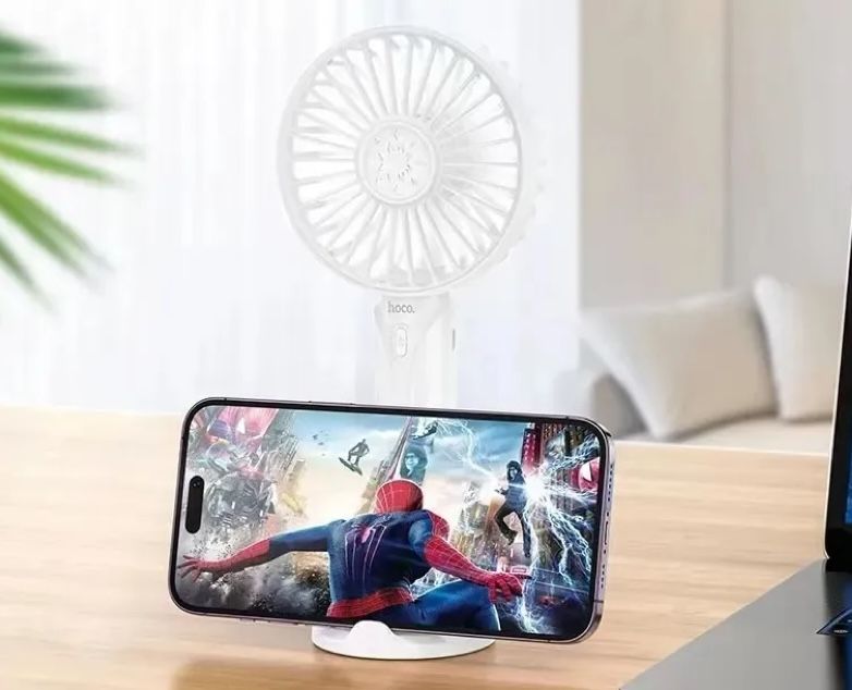 Портативный вентилятор HOCO DF07 1200mAh с подставкой для телефона, белый