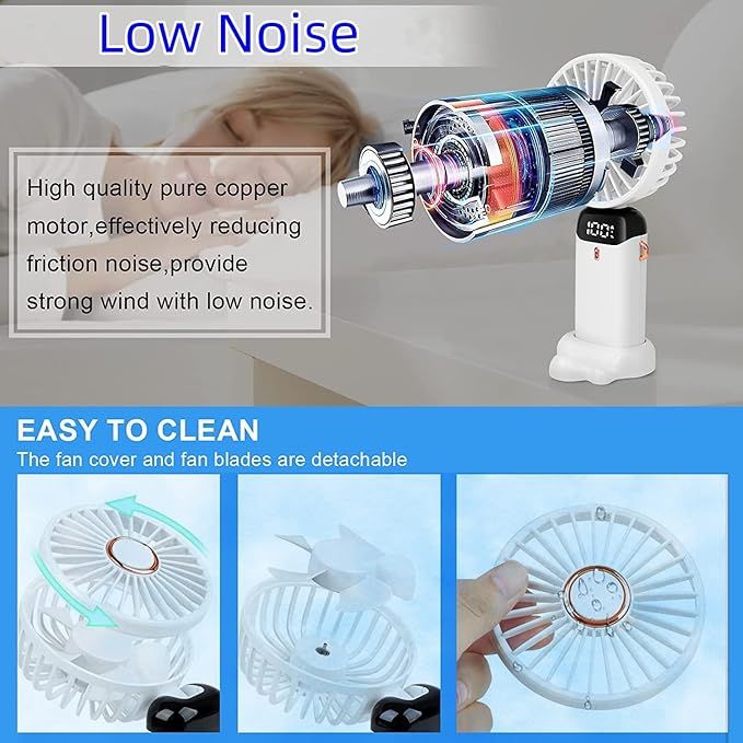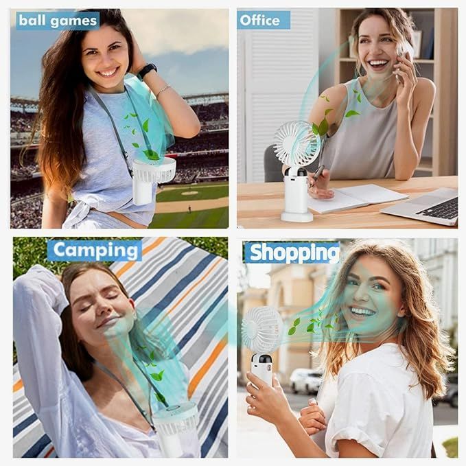 - Устройство можно держать в руке, установить на стол или повесить на шею с помощью ленты — это делает использование этого вентилятора максимально гибким и удобным.