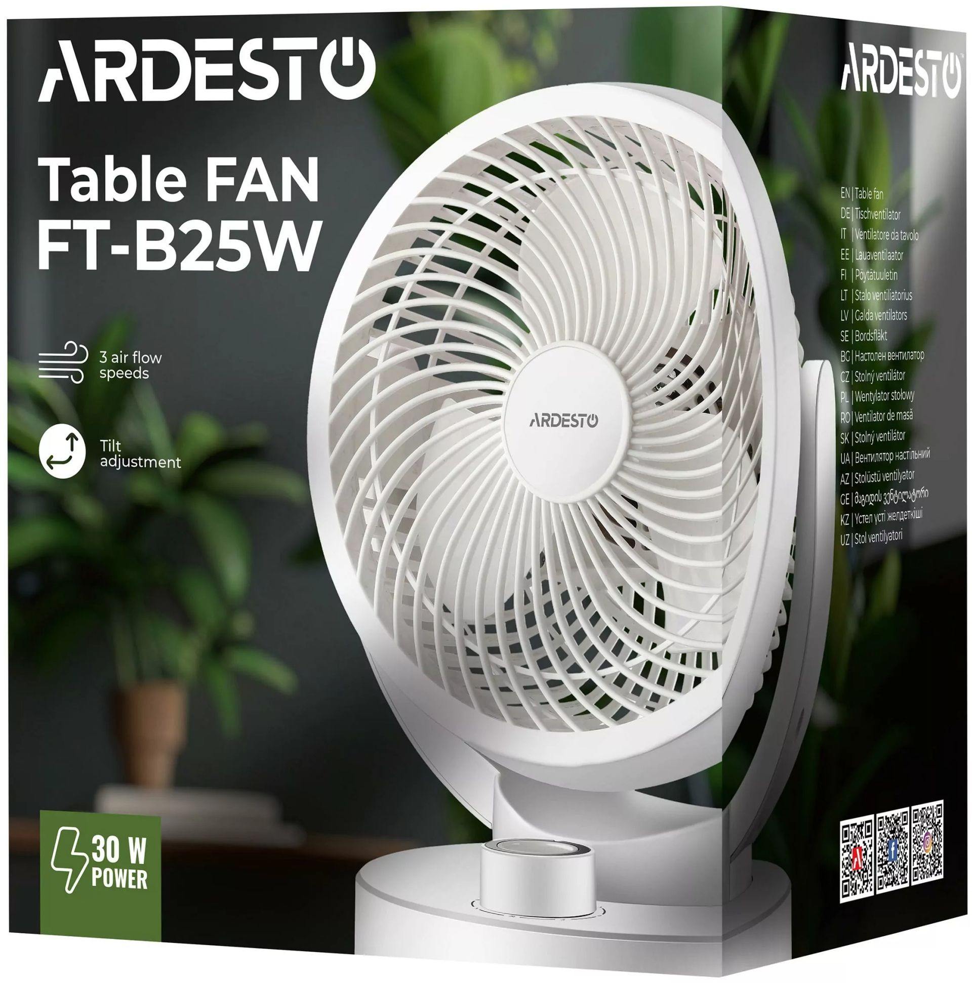 ARDESTO FT-B25W – это стильный и эффективный настольный вентилятор, созданный для персонального охлаждения в жаркое время года. Он идеально подходит для использования дома, в офисе, на рабочем столе или прикроватной тумбе. Благодаря сочетанию высокой производительности, эргономичного дизайна и простоты управления, он обеспечивает приятную прохладу и удобство в эксплуатации.