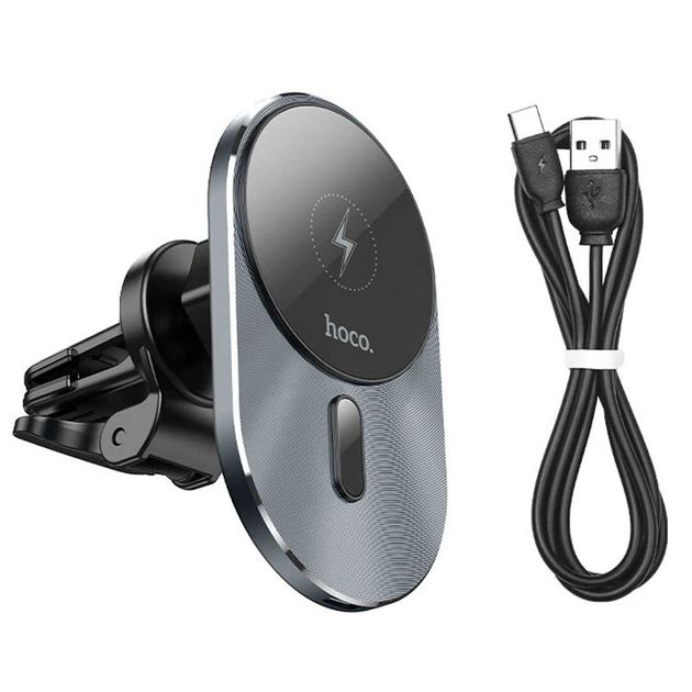 Магнитный автодержатель Hoco CA91 Magic беспроводная быстрая зарядка 15W серый