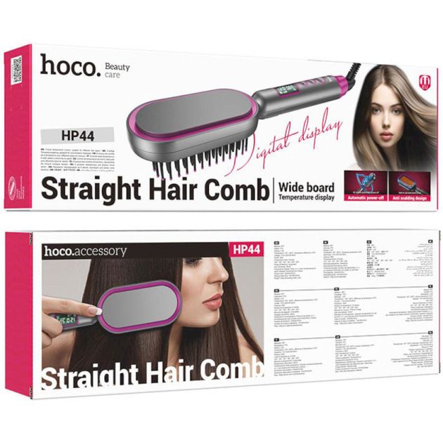 Розово-красная Электрическая расческа выпрямитель для волос Hoco HP44