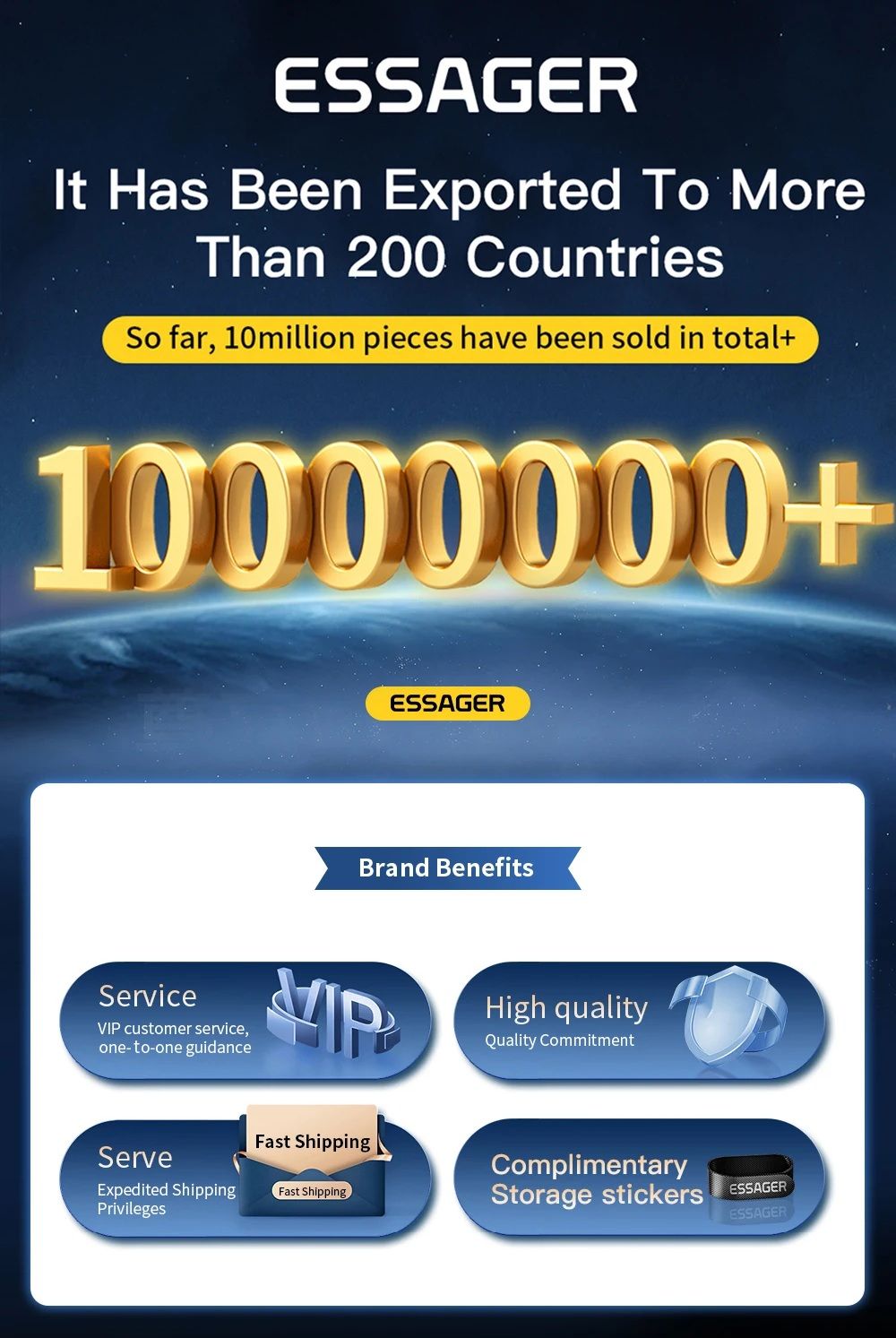 Кабель 7A 100W 2m (200cm) с дисплеем Essager USB - Type C Black