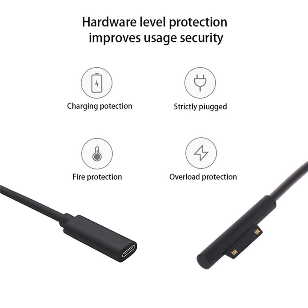 Этот адаптер предназначен для быстрой и безопасной зарядки планшетов и ноутбуков линейки Microsoft Surface от зарядных устройств с выходом Type-C, поддерживающих технологию Power Delivery (PD). Он подключается к фирменному разъему Surface Connect и позволяет заряжать устройство от современного источника питания, включая зарядные устройства от ноутбуков, повербанков и автомобильных адаптеров с PD.
