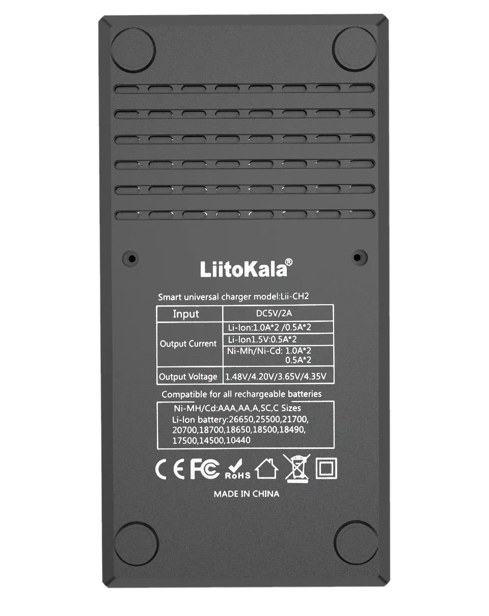 Зарядное устройство универсальное LiitoKala Lii-CH2, 2 слота, для аккумуляторов 18650/ АА/ ААА и других