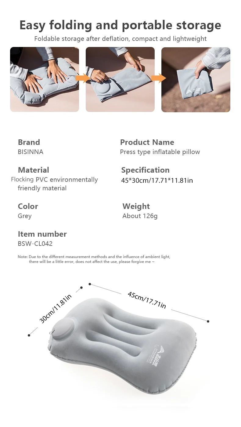 Эта надувная кемпинговая подушка BISINNA является идеальным решением для путешественников, туристов и любителей активного отдыха. Модель сочетает в себе компактность, лёгкость и продуманный эргономичный дизайн, обеспечивая комфортную поддержку шеи и поясницы в любых условиях — в кемпинге, в поезде, в самолёте или даже в офисе.