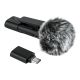 - Съёмная меховая насадка защищает микрофон от ветра, дыхания и фоновых шумов при записи на улице.