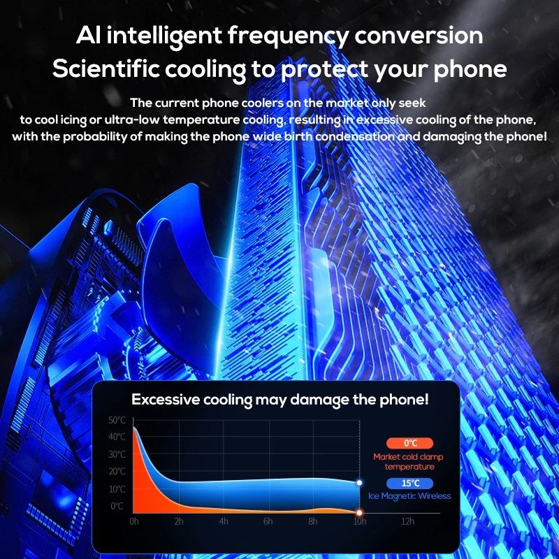 - Благодаря технологии AI Frequency Conversion, MEMO CX12 автоматически регулирует режимы работы кулера в зависимости от нагрева устройства, обеспечивая оптимальную температуру без переохлаждения, что безопасно для вашего смартфона.