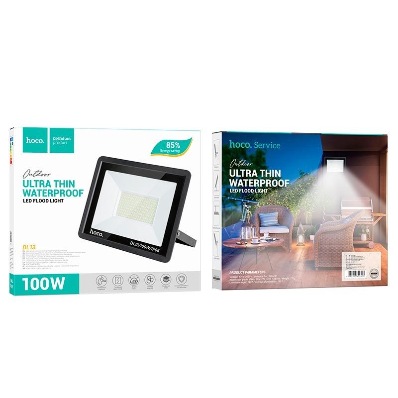 HOCO DL13 — это мощный уличный светодиодный прожектор с ультратонким корпусом, созданный для надёжного освещения открытых пространств. Он сочетает в себе высокую яркость, энергоэффективность и современный дизайн. Идеально подходит для освещения дворов, парков, фасадов зданий, строительных площадок, складов и других уличных объектов.