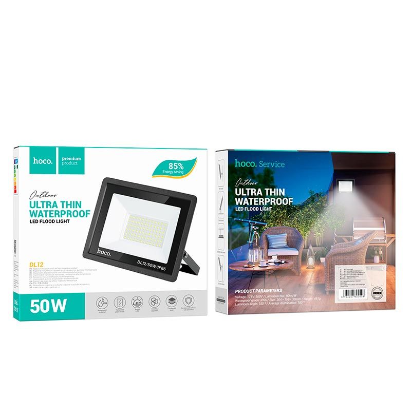 Ультратонкая лампа HOCO DL12 для улицы, светодиодная прожектор LED |50W, IP66| черная