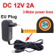 Блок питания/Адаптер AC-DC 12V 2A 5.5x2.5(2.1)mm Шнур 3м | Для ИБП, тюнера, камеры, ресивера и устройств с питанием DC 12V до 2A | Black