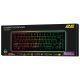 - Пользователь может выбрать один из трех режимов освещения, настроить яркость и скорость эффектов. Подсвечиваются символы и зазоры между клавишами.