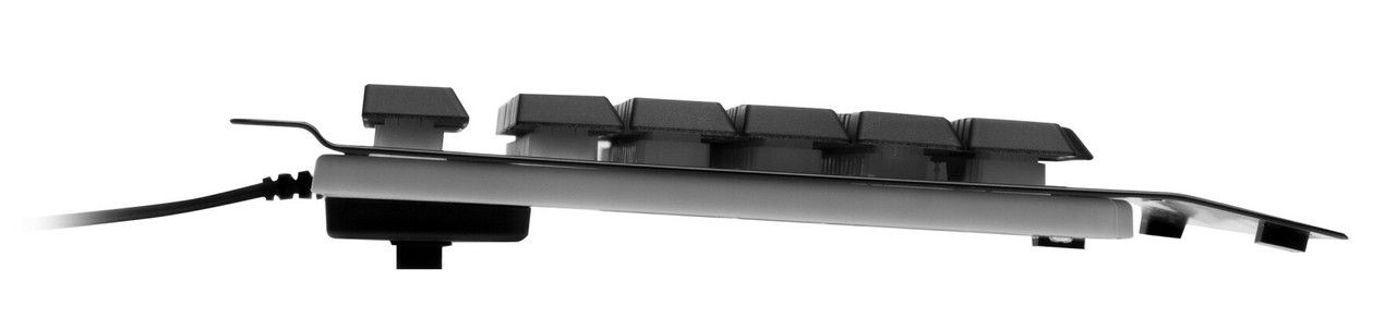 - Корпус клавиатуры выполнен из цельного листа алюминия, что гарантирует высокую прочность и устойчивость к механическим повреждениям.