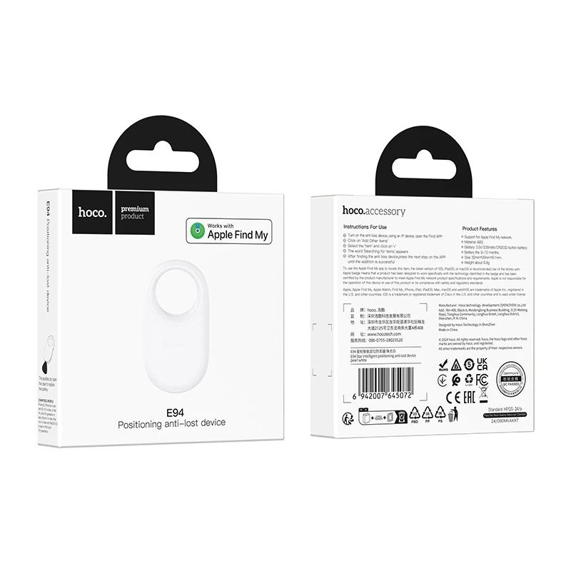 Поисковый трекер Hoco E94 Star — это умное и надежное устройство для отслеживания местоположения ваших вещей. Благодаря поддержке сети Apple Find My, этот трекер позволяет быстро находить потерянные предметы — от ключей и кошельков до домашних питомцев и автомобилей. Его компактный размер, малый вес и водонепроницаемый корпус делают его идеальным аксессуаром для повседневного использования.