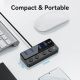 - Благодаря компактным размерам и вертикальному расположению портов, хаб удобно использовать как на рабочем столе, так и в дороге. Встроенный светодиодный индикатор отображает активность устройства.