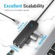 Это универсальное устройство, которое значительно расширяет функциональность ноутбуков, планшетов и ПК с интерфейсом Type-C. Он позволяет подключать сразу несколько USB-устройств, обеспечивая высокую скорость передачи данных, стабильное интернет-соединение и дополнительное питание для энергоёмкой техники.