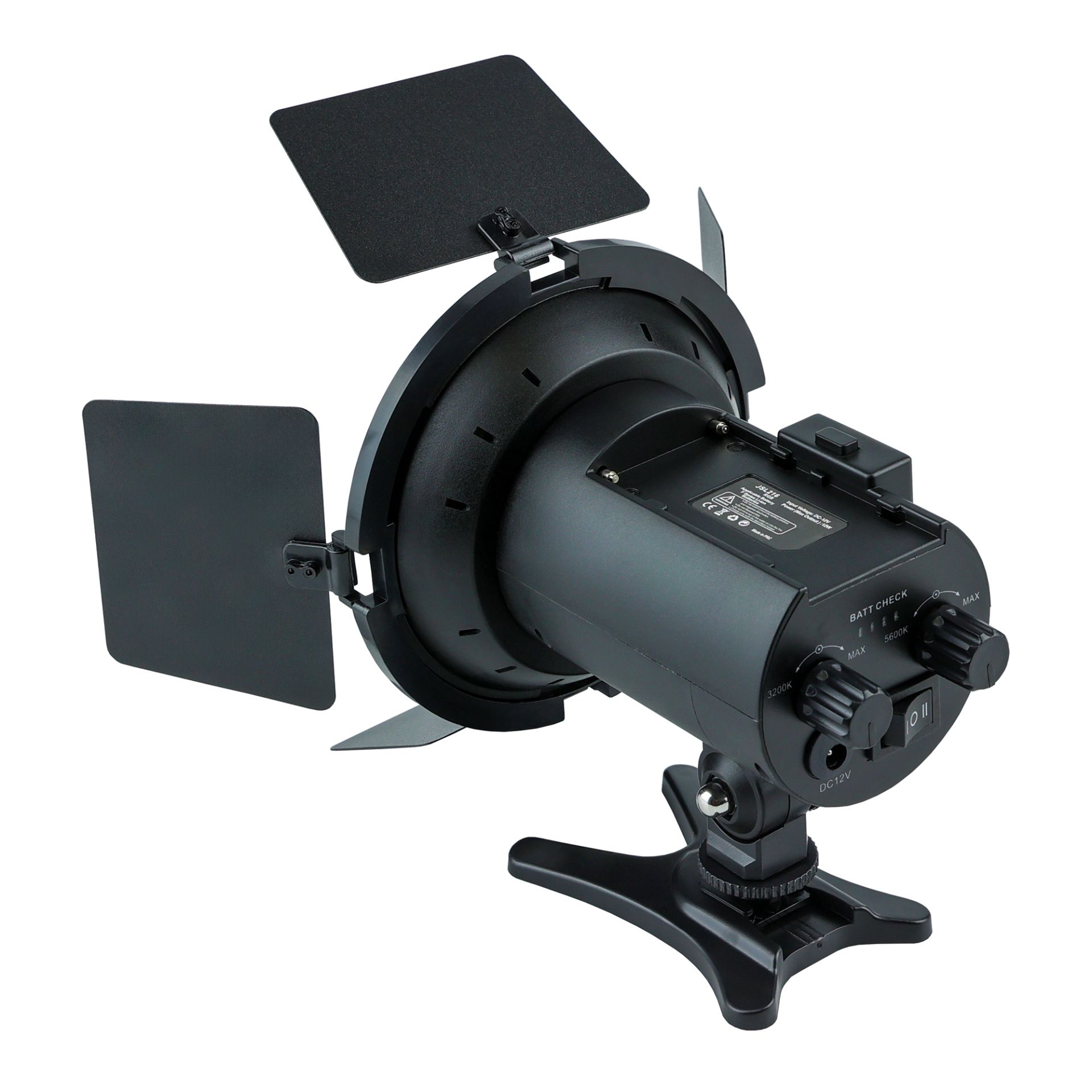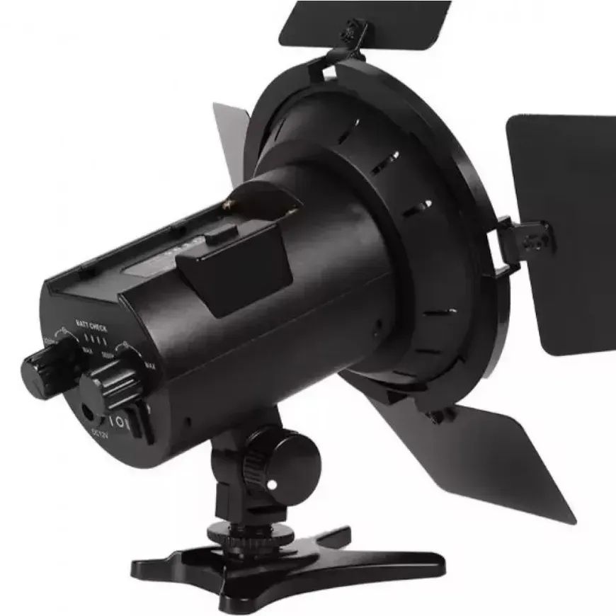 - Работает от сети 220V или от аккумулятора (приобретается отдельно), благодаря чему подходит для съёмок как в помещении, так и на выезде.