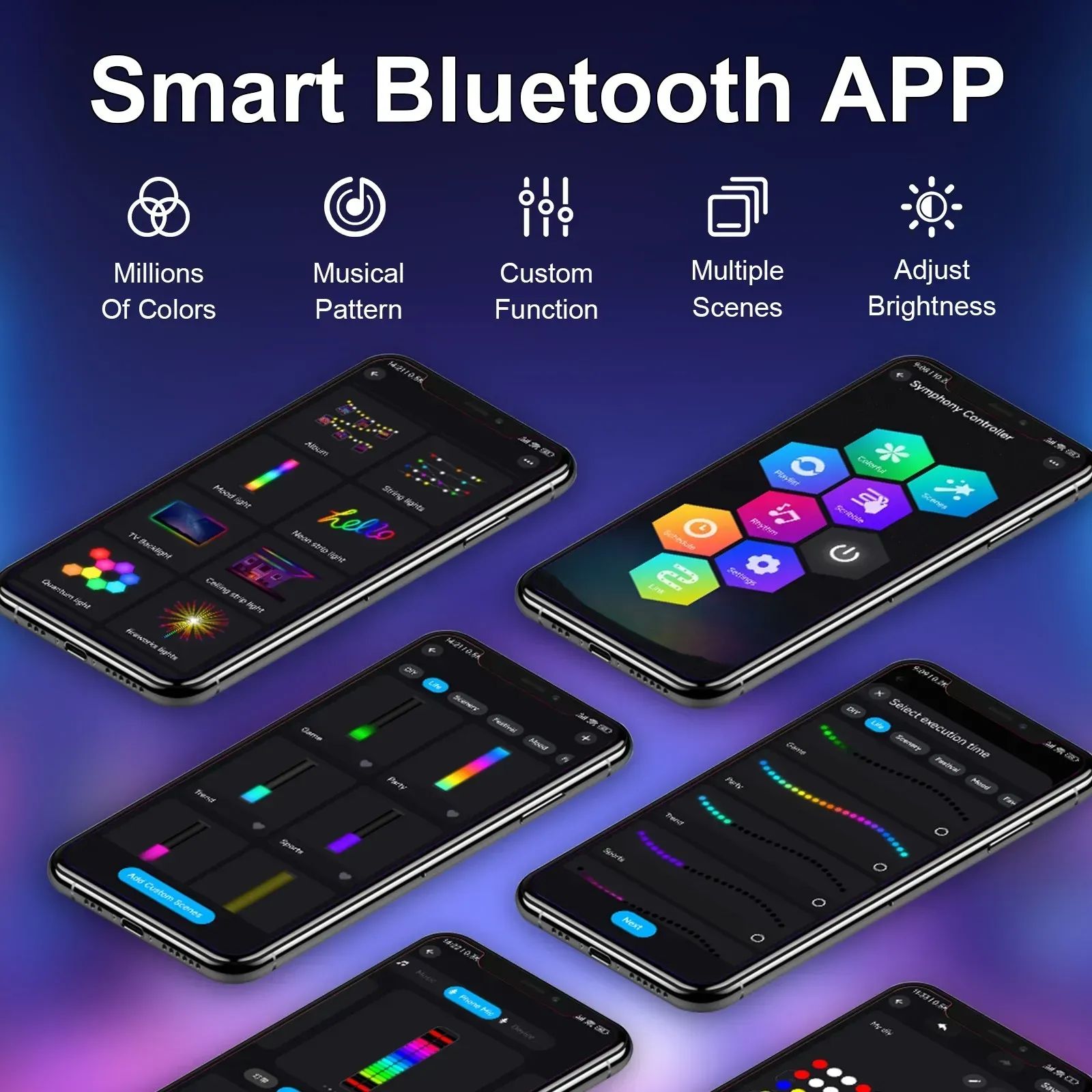 - Лампы реагируют на музыку, подстраивая свет под ритм, благодаря чему они идеально подходят для вечеринок и съемок.