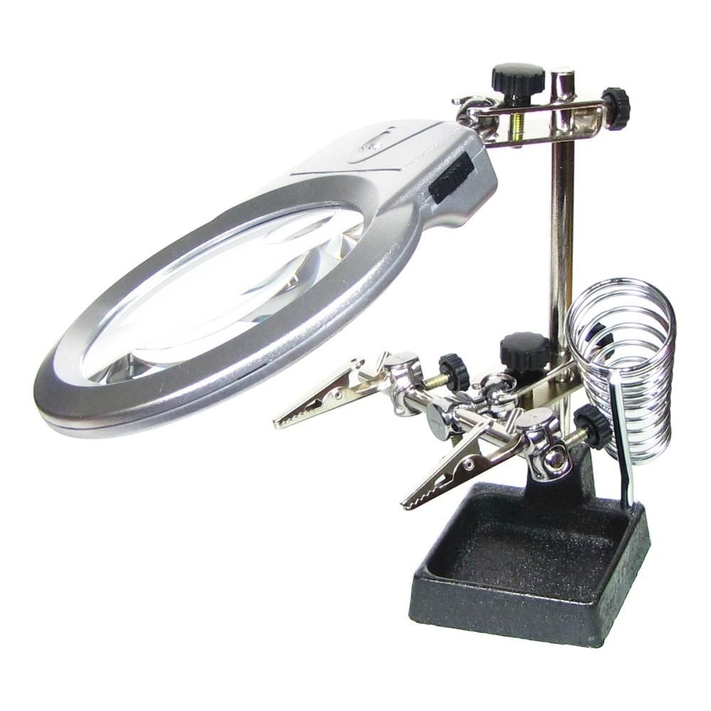 Держатель плат и паяльника MG16129-A с LED-подсветкой и двойной лупой (большая лупа 90 мм, 2x; малая лупа 21 мм, 6x)