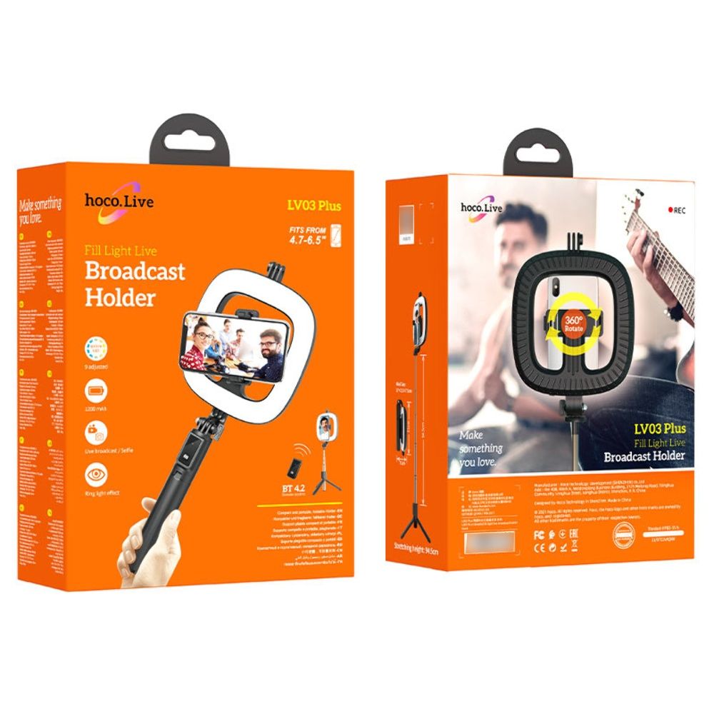 Многофункциональный штатив Hoco LV03 Plus с кольцевой подсветкой и Bluetooth-пультом — это идеальное решение для создания качественного фото- и видеоконтента, проведения прямых трансляций, видеозвонков и съёмки селфи. Благодаря лёгкой складной конструкции, встроенному свету с 3 режимами и поддержке беспроводного управления, этот трипод станет незаменимым помощником для блогеров, визажистов, стримеров, продавцов онлайн-товаров и всех, кто занимается съёмкой контента на смартфон