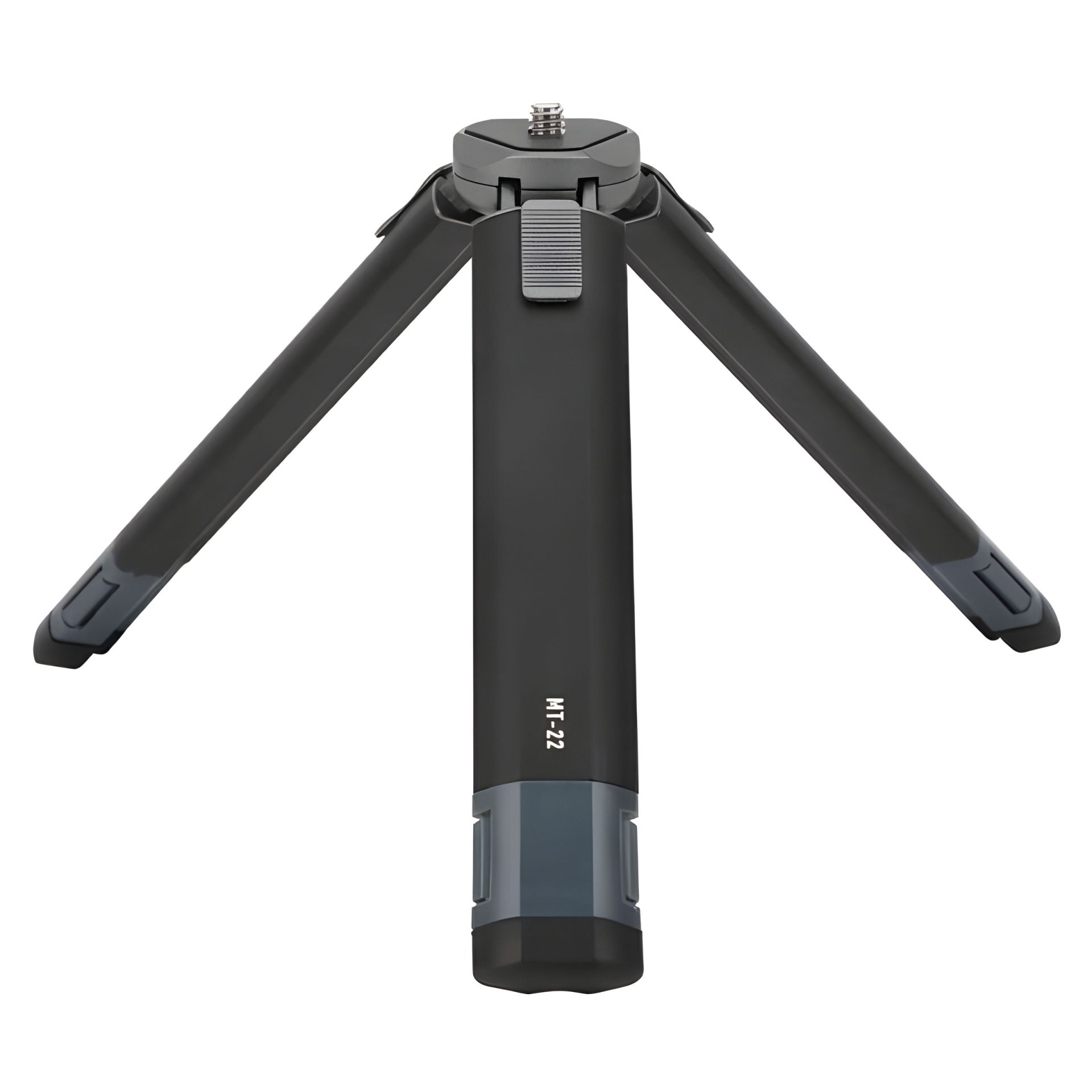 Ulanzi MT-22 — это прочный и компактный металлический мини-штатив, предназначенный для установки зеркальных, беззеркальных, компактных и экшн-камер, а также смартфонов (при использовании адаптера). Он идеально подходит для размещения съемочного оборудования на ровных поверхностях: столе, полу, полке и других.