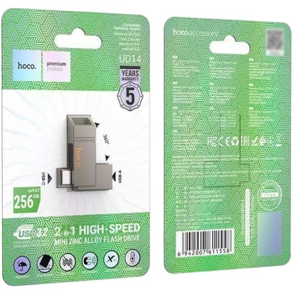 Hoco UD14 256GB металлик серый USB 3.2/Type-C 2 в 1 флеш накопитель