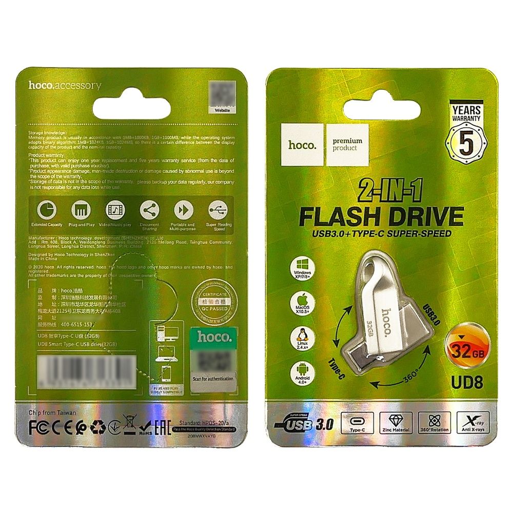 USB флеш-накопитель Hoco UD8 — это универсальное и надежное решение для хранения и передачи данных. Благодаря двум разъемам — USB Type-C и USB-A (3.0), устройство совместимо с большинством современных гаджетов: смартфонами, планшетами, ноутбуками и ПК. Компактный металлический корпус и высокая скорость работы делают эту модель идеальной для повседневного использования дома, на работе и в путешествиях.