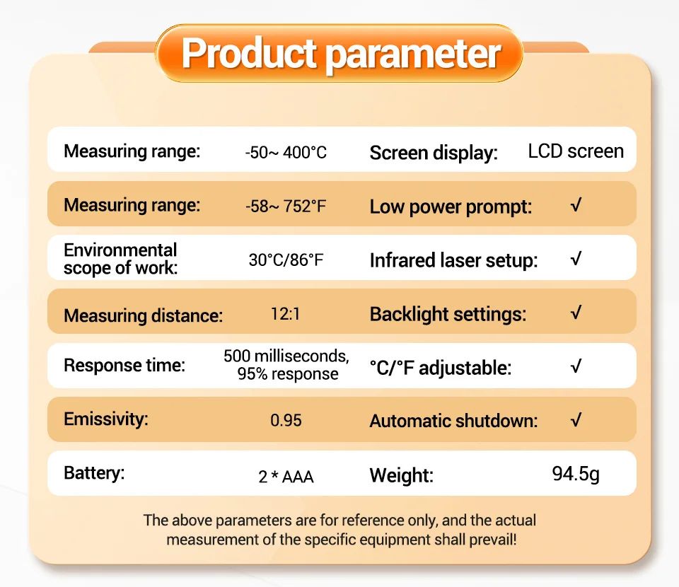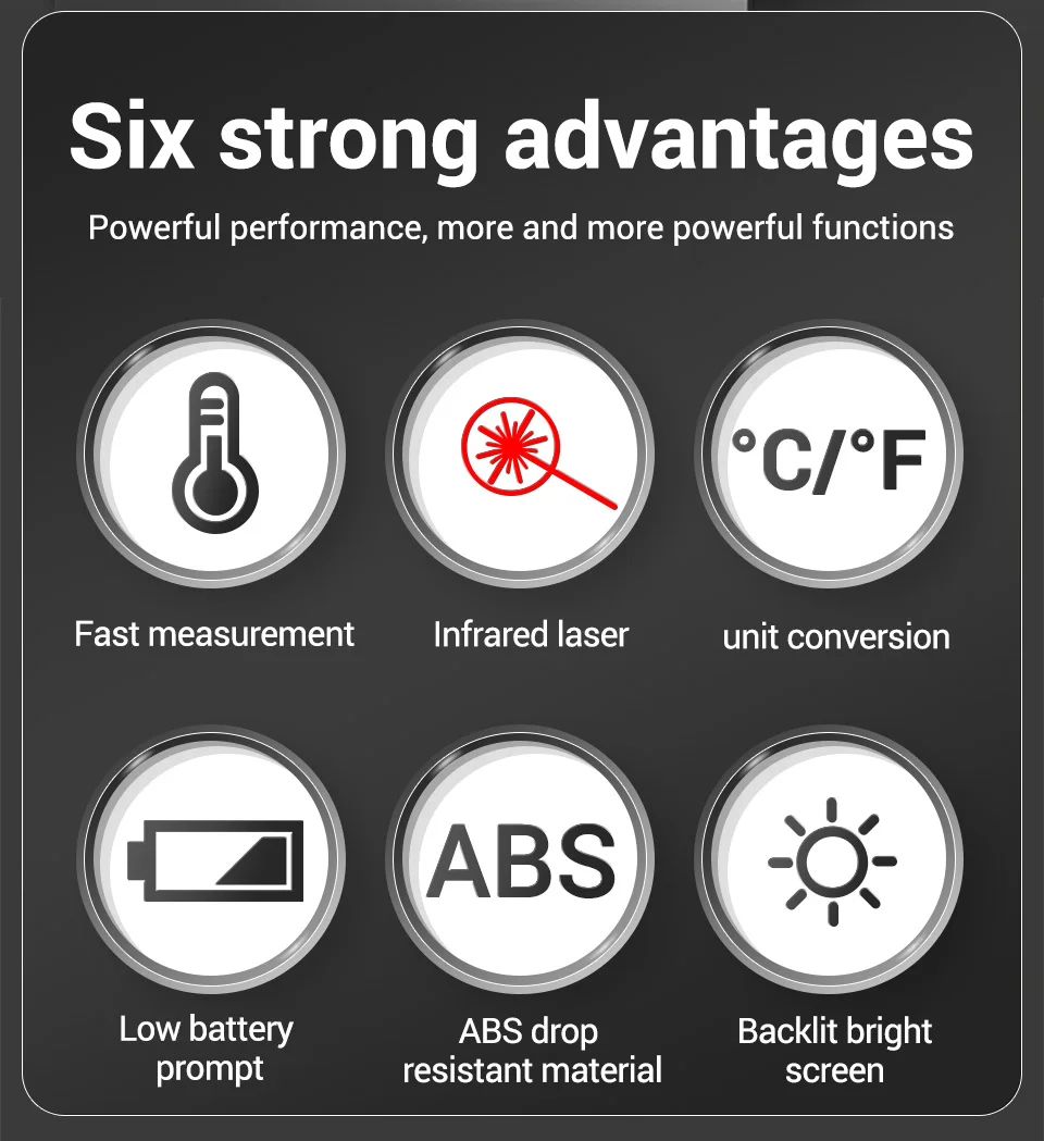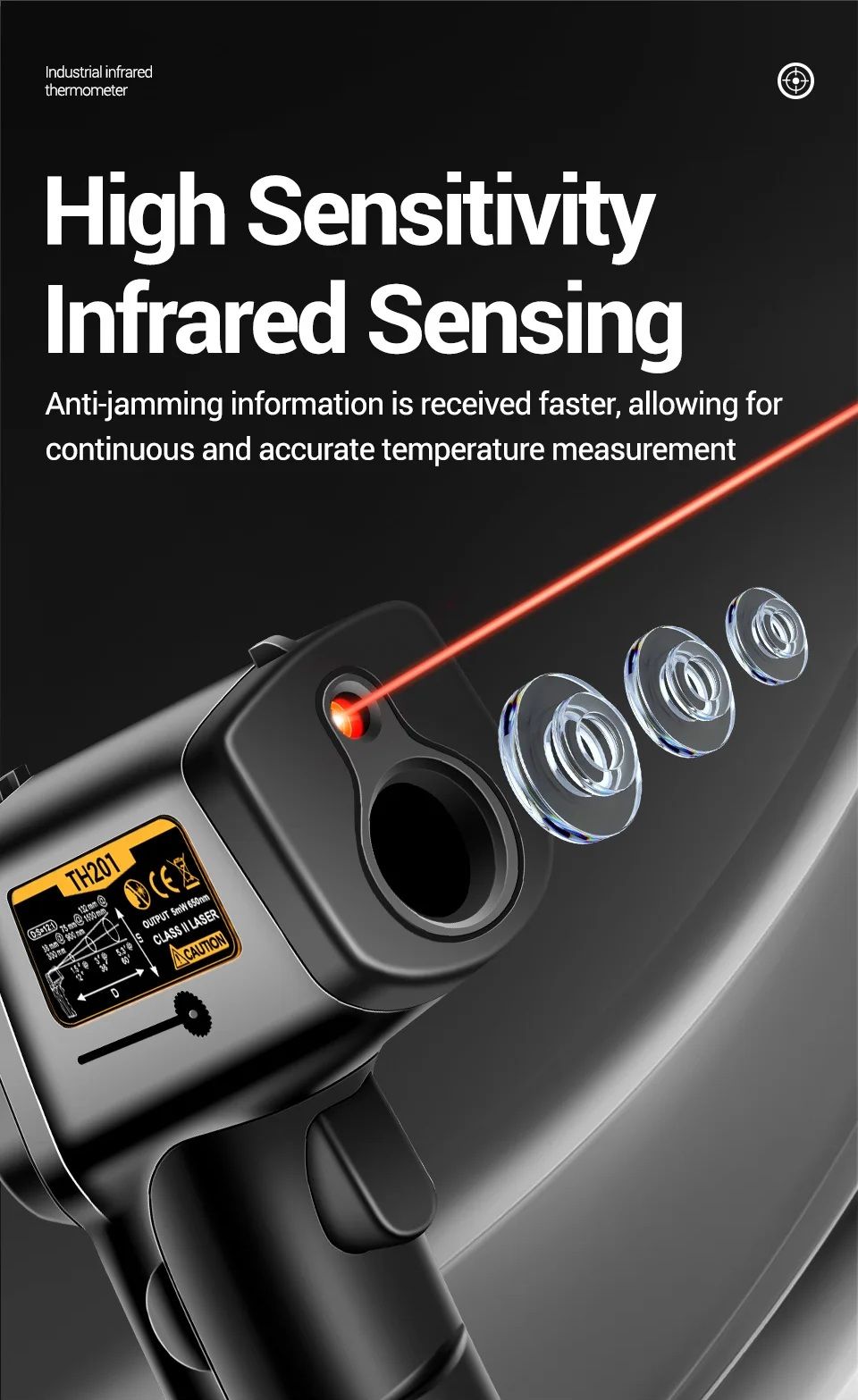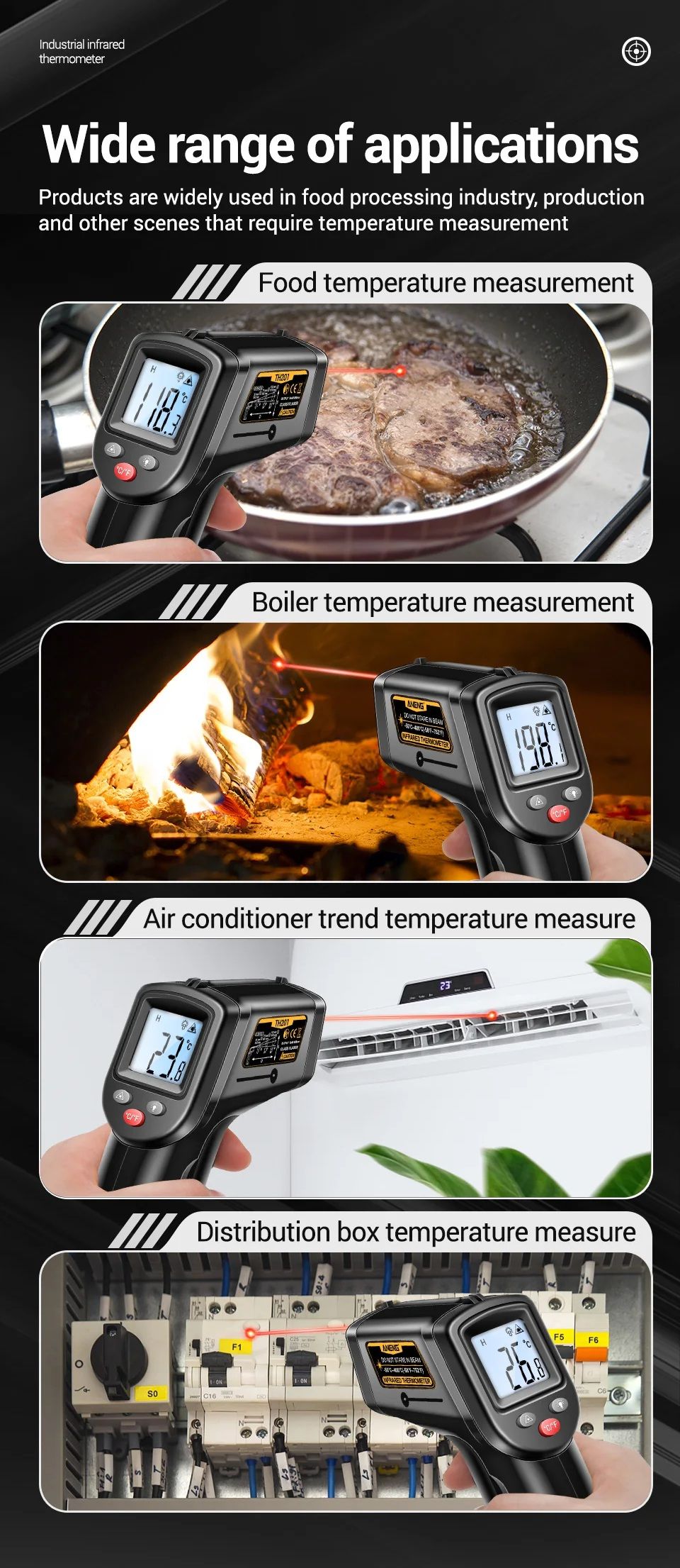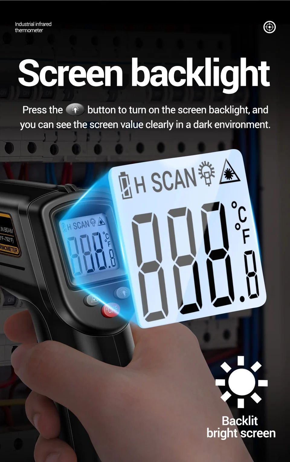 Инфракрасный термометр Aneng TH201 предназначен для быстрого и точного измерения температуры различных поверхностей и жидкостей. Идеально подходит для промышленного, технического и бытового применения — от проверки температуры труб, распределительных щитов и кондиционеров до контроля температуры воды, масла и продуктов.