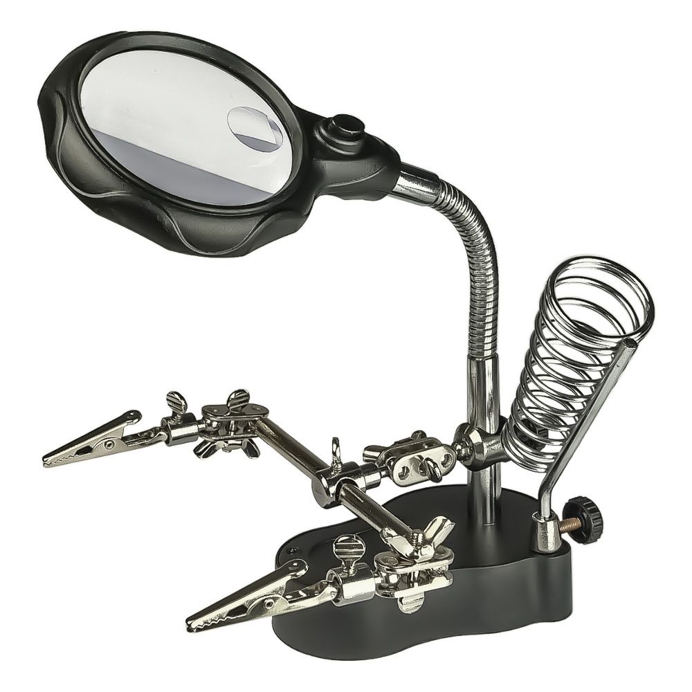 MG16126-A держатель для плат и паяльника с двойными лупами и LED-подсветкой (большая лупа d=65 мм, 3.5x; малая лупа d=17 мм, 12x)