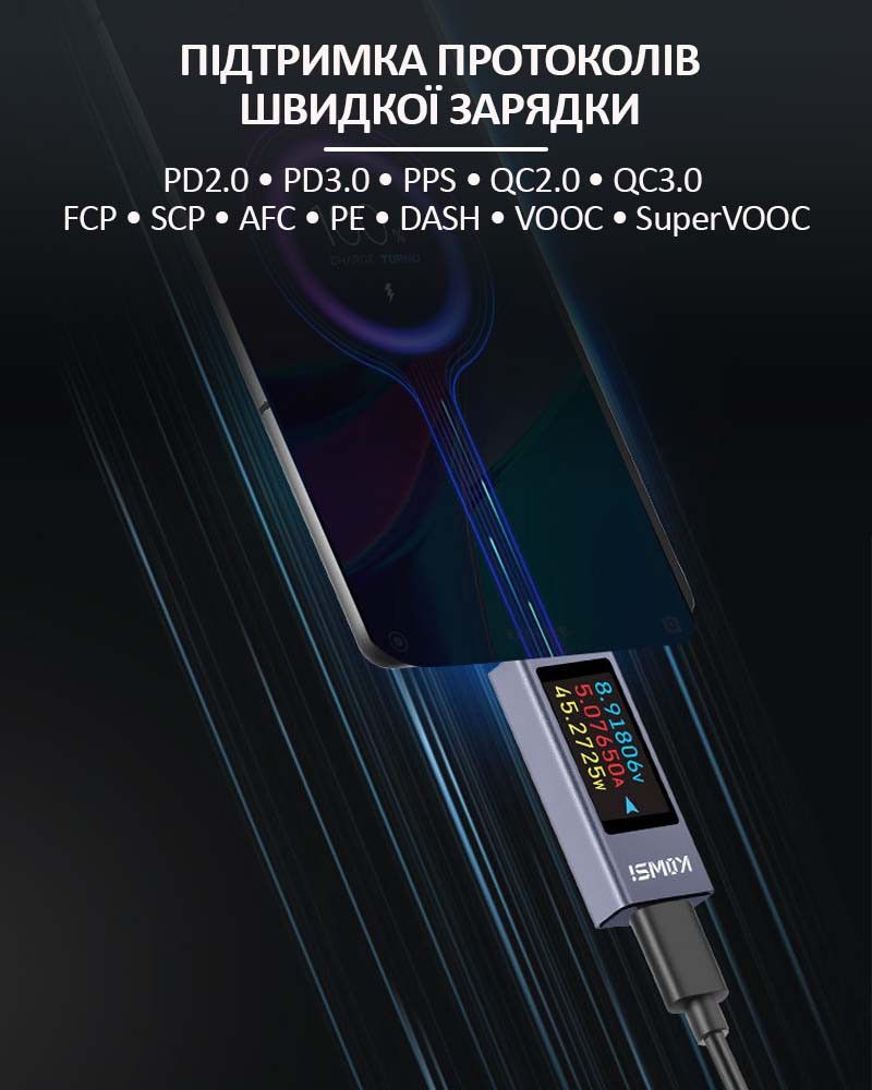 - Совместим с PD2.0, PD3.0, QC2.0, QC3.0, PPS и другими стандартами, обеспечивая универсальность применения.