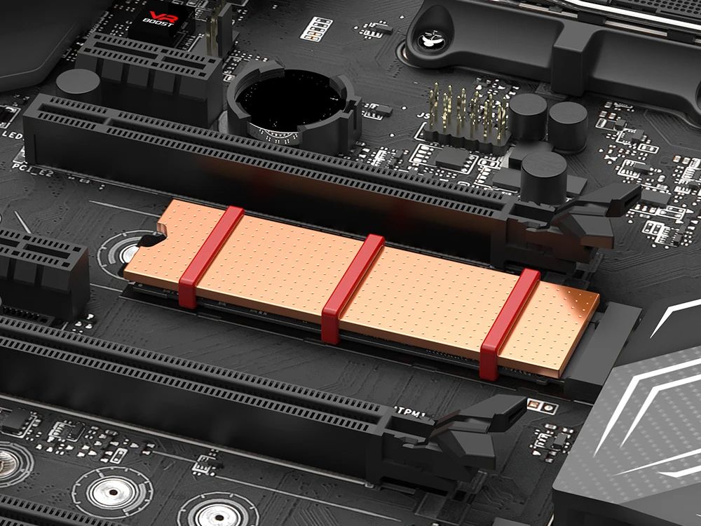 - Важно: всегда размещайте термопрокладку между радиатором и SSD, чтобы предотвратить механические повреждения микросхем и обеспечить корректный тепловой контакт.