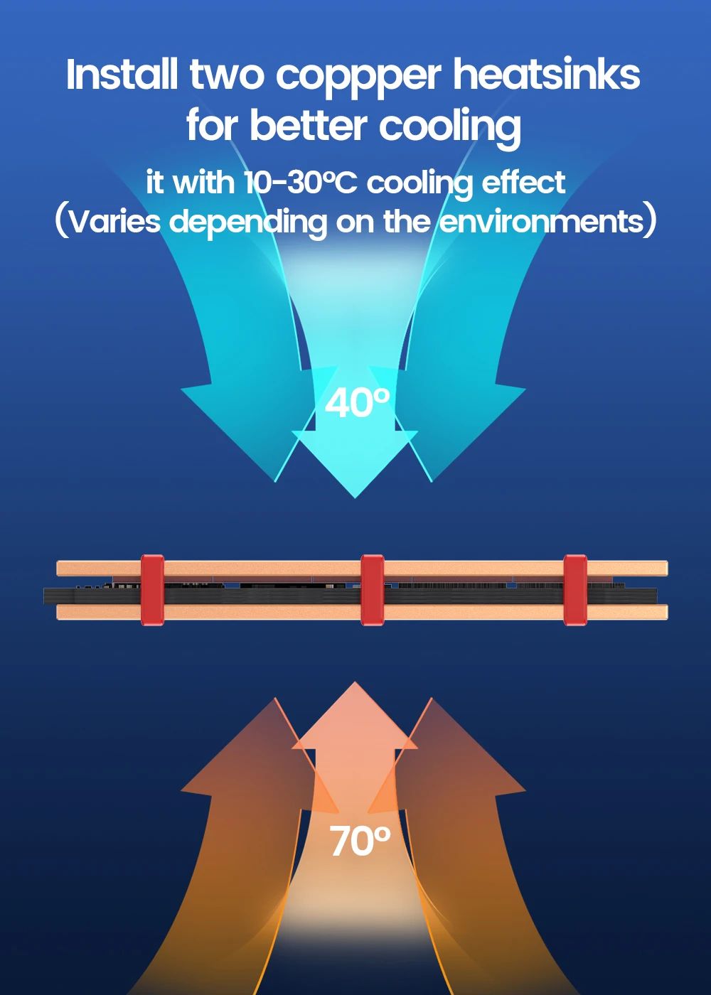 JEYI Copper III комплект медных радиаторов для M.2 SSD, NVMe 2280 Cooler Solid State Disk Radiator с термопрокладками, медный